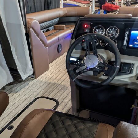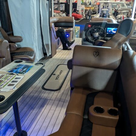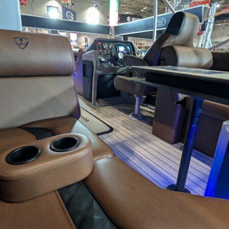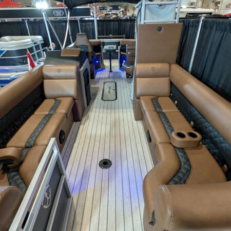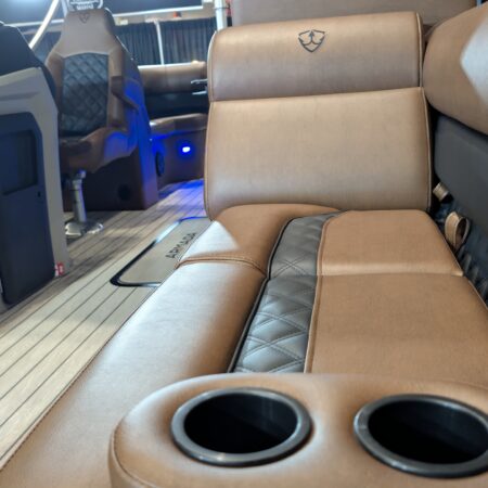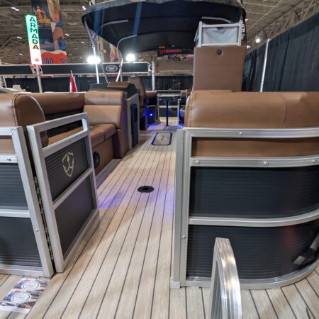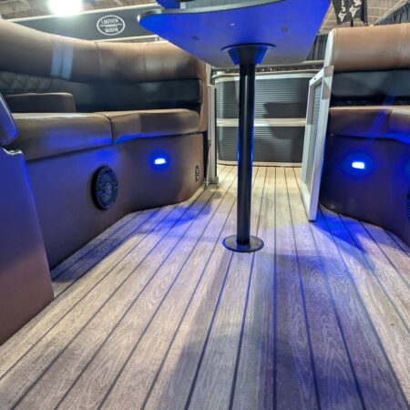 The Drakkar is our most comfortable and well-equipped pontoon. Along with a spacious swim platform, it is equipped with 2 magnificent captain’s chairs and lounge seats that will delight all pleasure boaters who are looking to spend long hours out on the water. With all the standard equipment on this pontoon, you will not find anything comparable at this price!