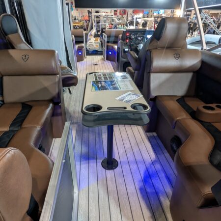 - Deluxe Seadek-covered front table (removable) with 4 glass holders
