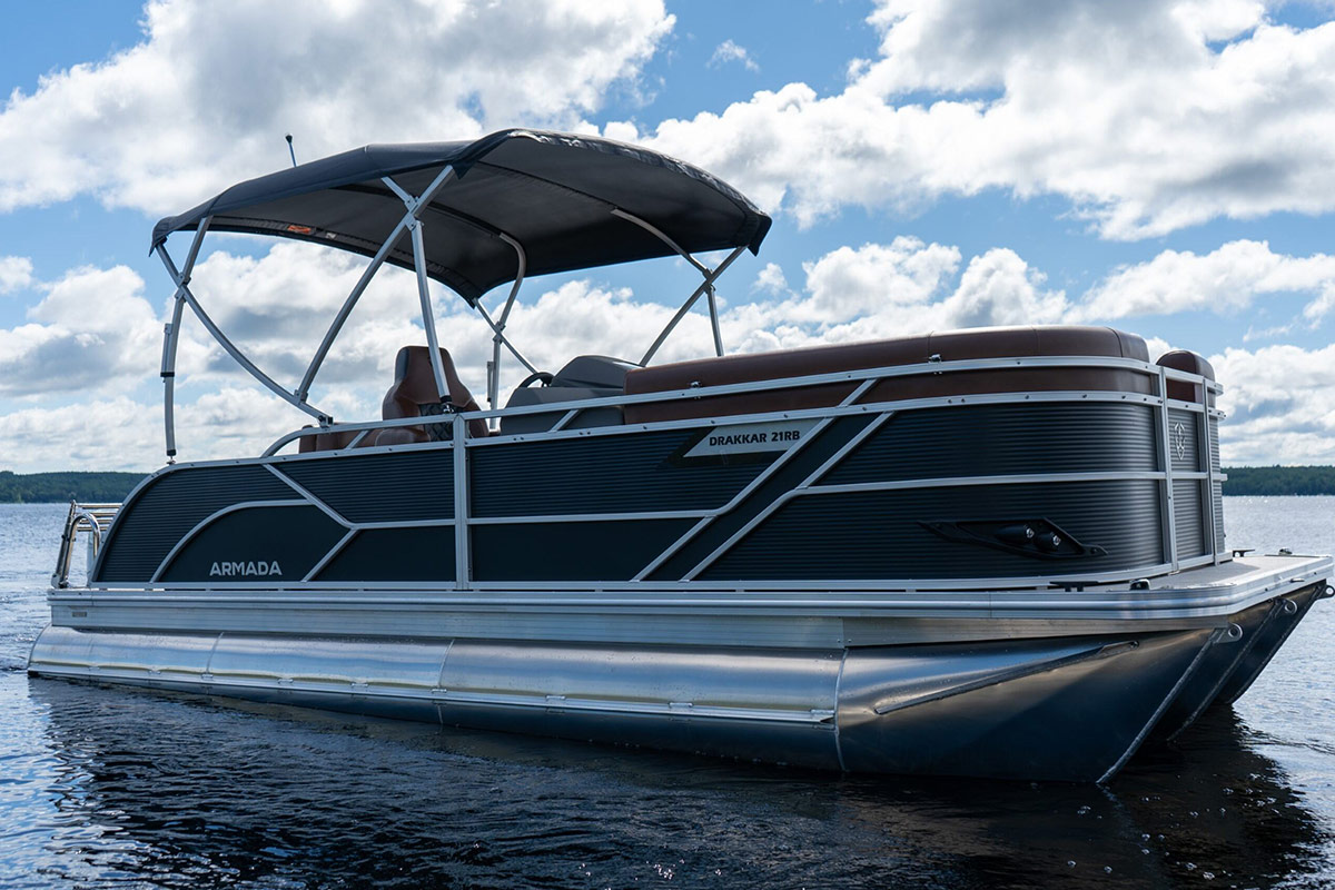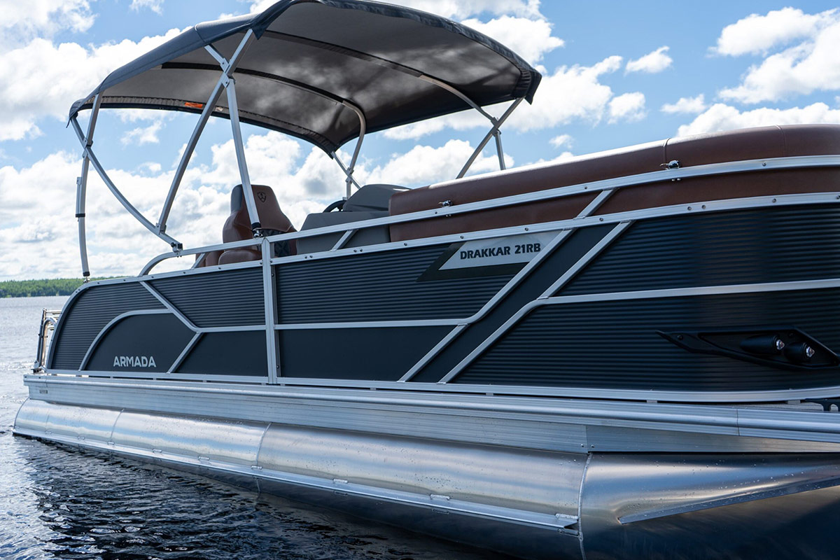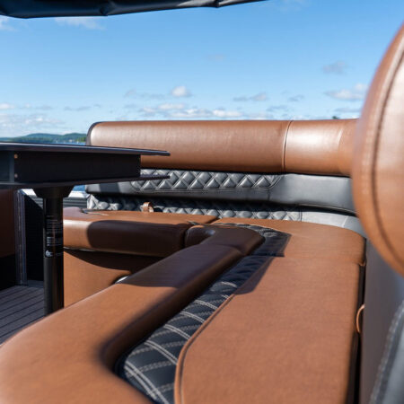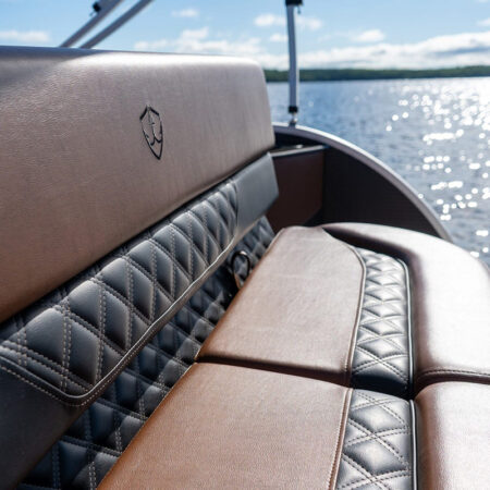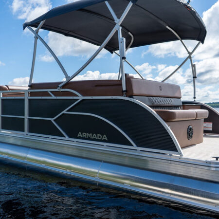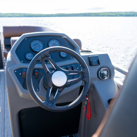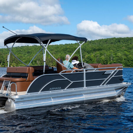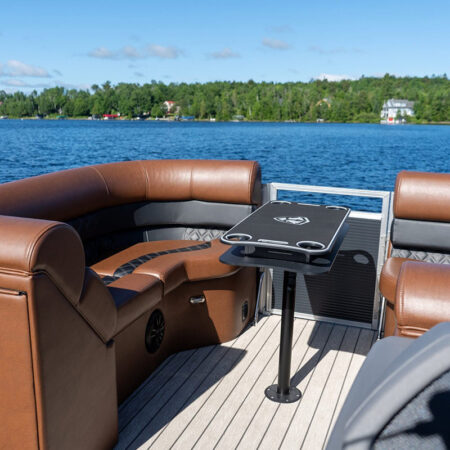 The Drakkar is our most comfortable and well-equipped pontoon. Along with a spacious swim platform, it is equipped with 2 magnificent captain’s chairs and lounge seats that will delight all pleasure boaters who are looking to spend long hours out on the water. With all the standard equipment on this pontoon, you will not find anything comparable at this price!