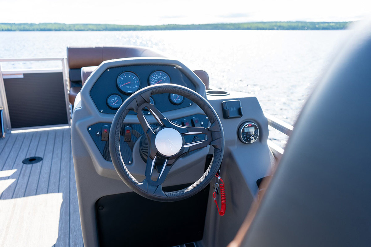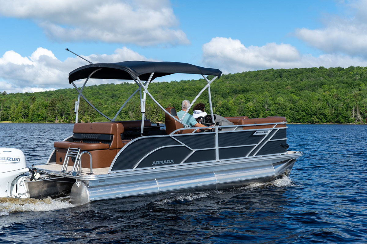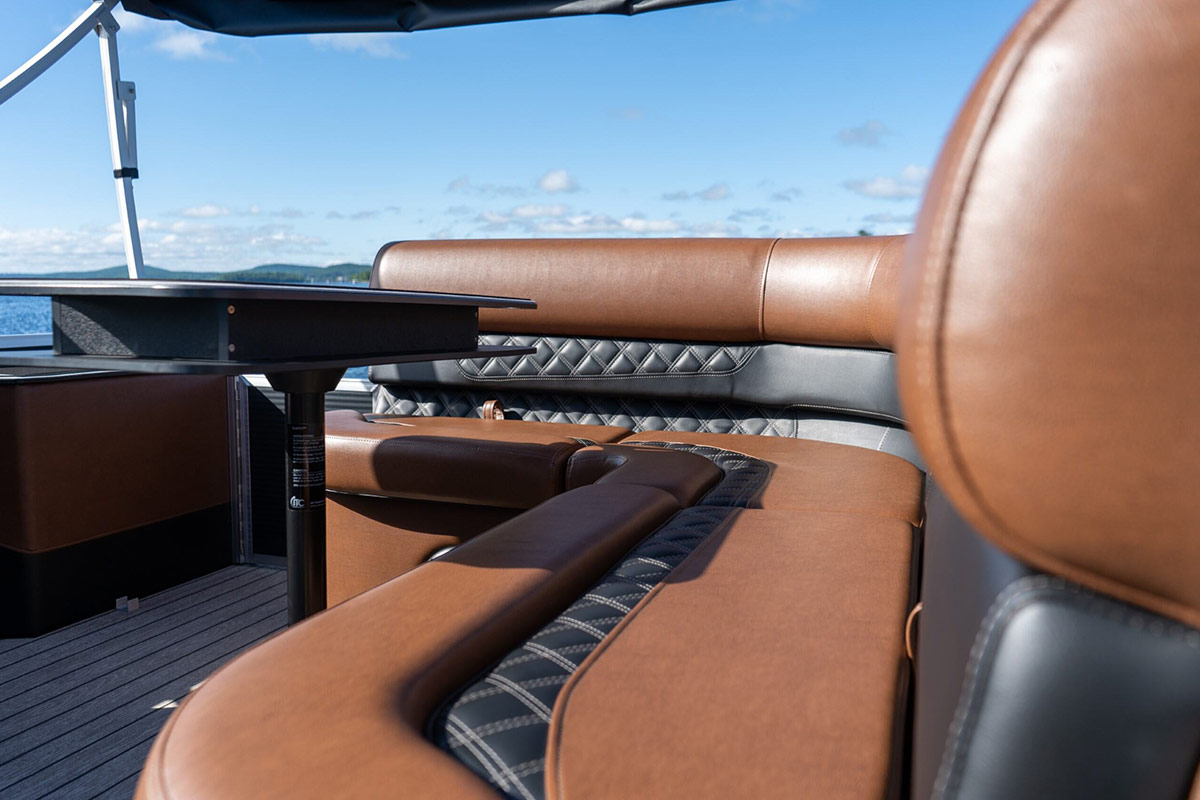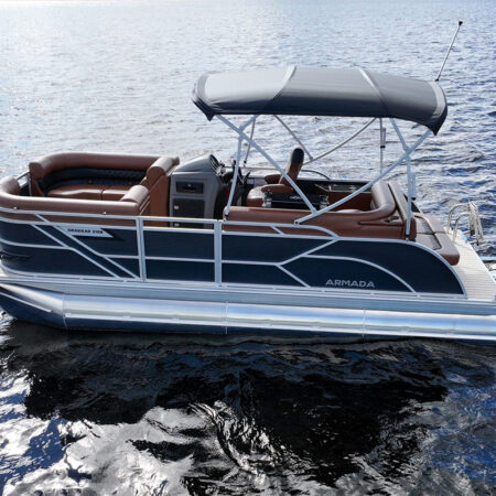 The Drakkar is our most comfortable and well-equipped pontoon. Along with a spacious swim platform, it is equipped with 2 magnificent captain’s chairs and lounge seats that will delight all pleasure boaters who are looking to spend long hours out on the water. With all the standard equipment on this pontoon, you will not find anything comparable at this price!