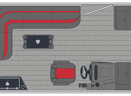 • Large “L” shaped bench seat with back-to-back benches facing aft and storage space under the modules