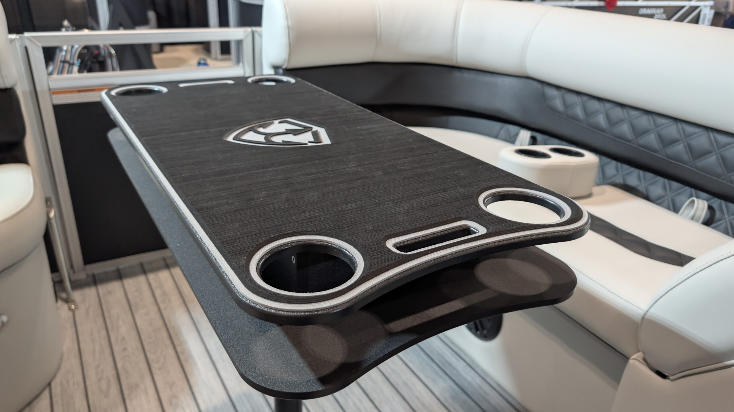 - Deluxe Seadek-covered front table (removable) with 4 glass holders